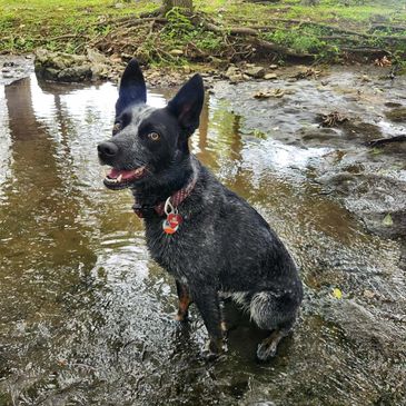 Mika ( aka Mika the barn doggo) was adopted 2.5 years ago by her forever dad, Tim. She loves working with horses and people, always up for a trail ride, a fame of fetch and of course cuddle time.